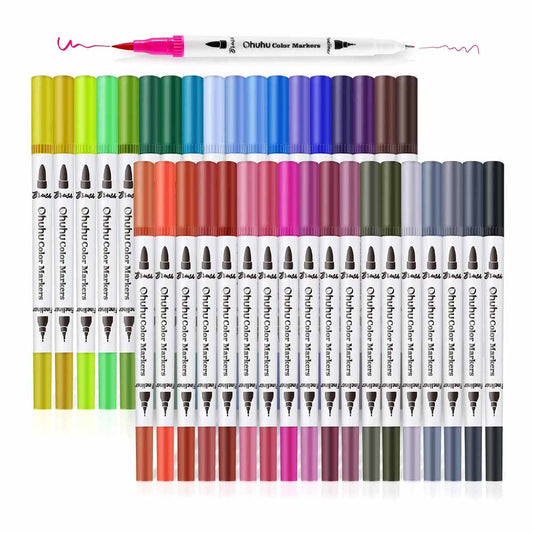 Set 36 Marcadores Ohuhu doble punta Acuarelables: Pincel & Fineliner