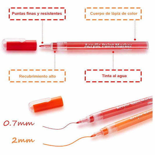 Set 48 marcadores acrílicos: 24 colores en punta fina reversible redonda y biselada