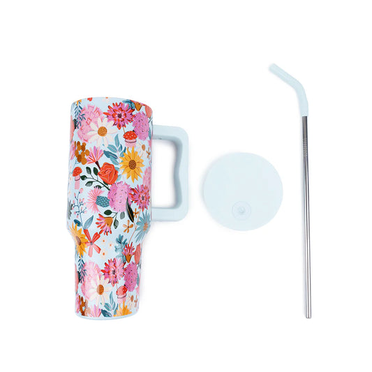 Vaso Acero Inoxcidable con Bombilla - Floral