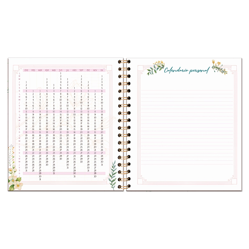 Agenda Floral Diaria 2026 con espiral