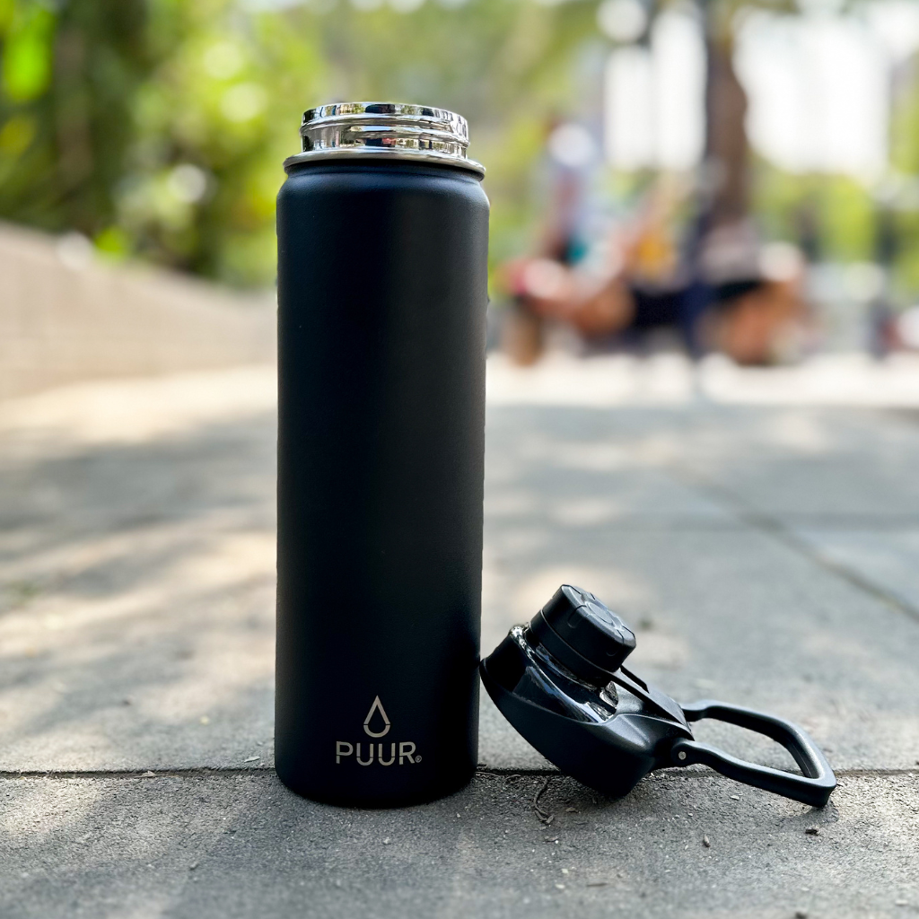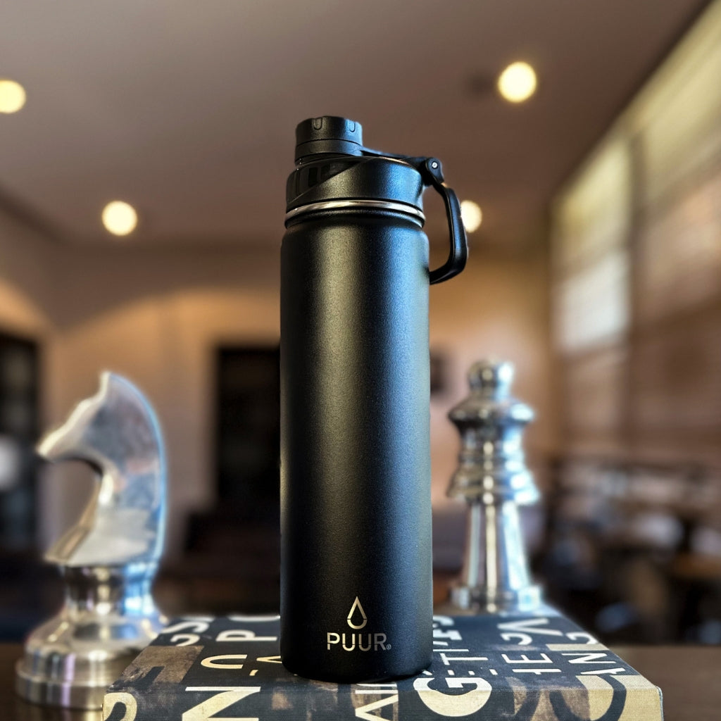Nuestra botella térmica de 660 ml de tono negro, está diseñada para los amantes del deporte y la aventura, esta botella ofrece un equilibrio perfecto entre estilo y funcionalidad para acompañarte en tus actividades diarias.