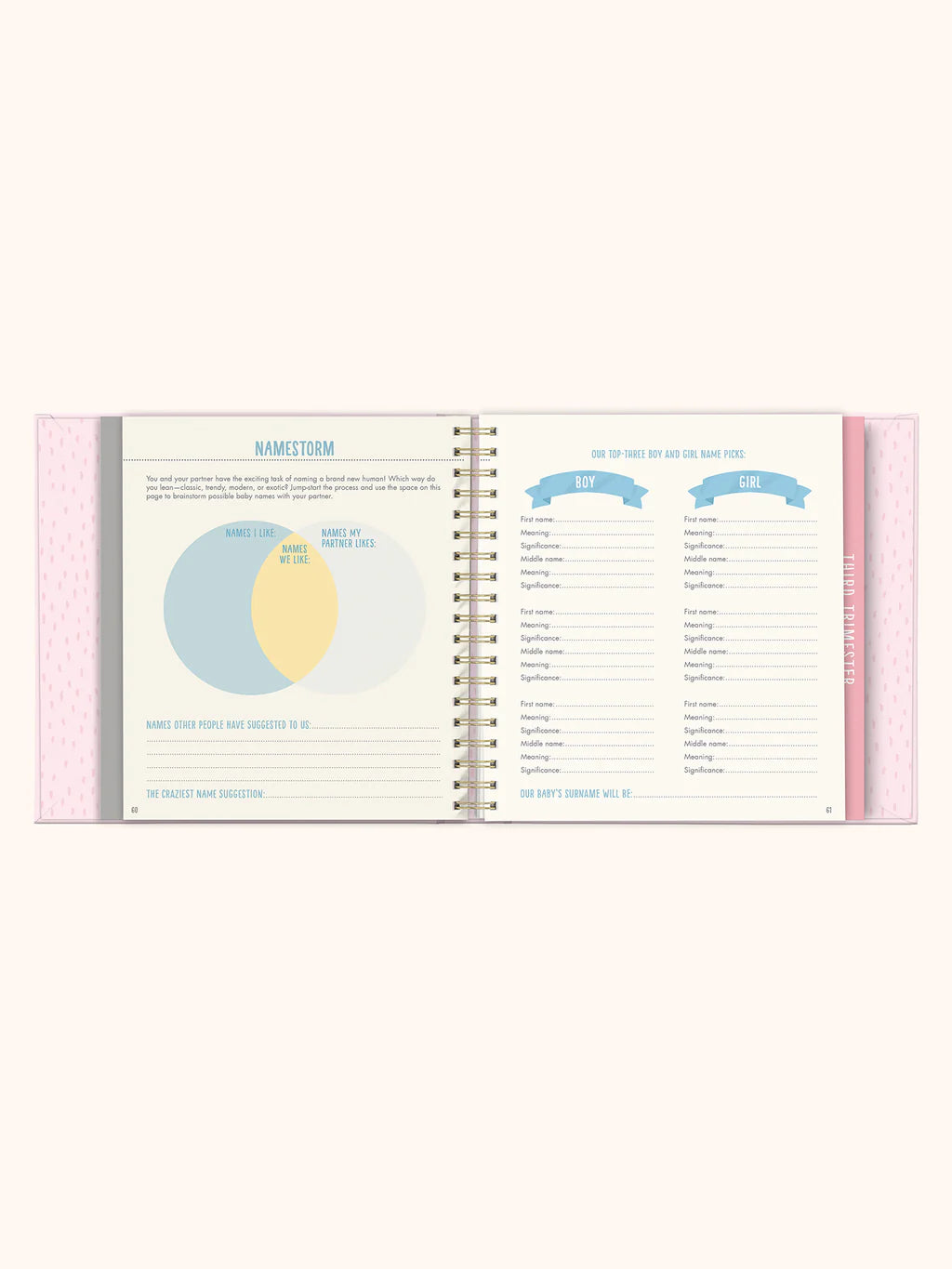 ¡Crea un recuerdo único anotando los momentos más memorables de tu embarazo! Diseñado tanto para futuras mamás primerizas como para las más experimentadas, este diario de 144 páginas, bellamente ilustrado, está organizado por trimestres e incluye diversas sugerencias para escribir, listas de verificación y espacios para completar; además de mucho espacio para registrar el crecimiento de tu pancita, mostrar tus ecografías, escribir sobre tus sentimientos y planificar la llegada del bebé. Es la manera perfecta de capturar los recuerdos que atesorarás para siempre.