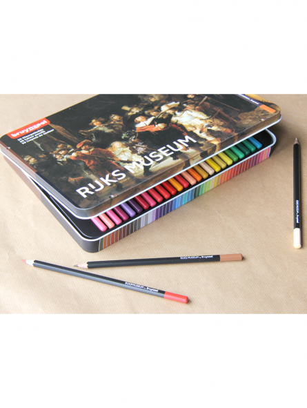 Esta colección consta de 4 cajas impresas con las obras de los Grandes Maestros holandeses. Las cajas, al igual que los lápices, tienen un acabado mate que les da un aspecto lujoso. La caja contiene la imagen de La Ronda de Noche de Rembrandt van Rijn.