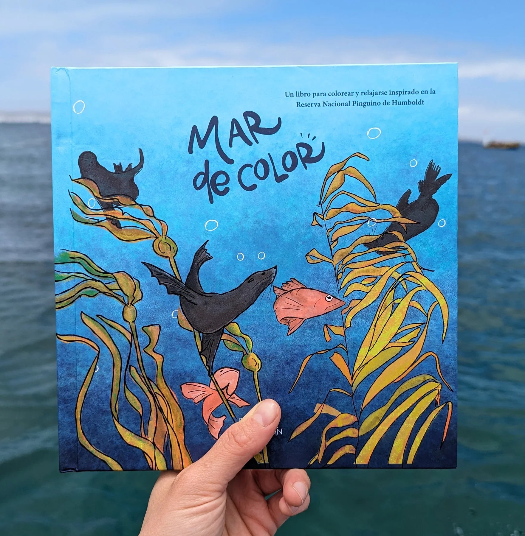 Este es un libro para colorear para adultos y niños acerca del mundo mágico que existe bajo la línea del horizonte del Archipiélago de Humboldt.