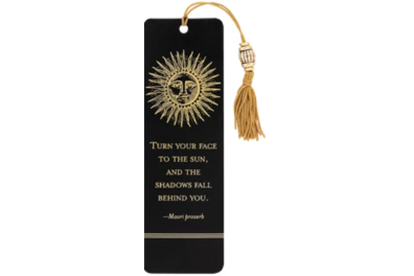 - Elegante marcapáginas que combina un proverbio maorí con un diseño solar, estampado en lámina dorada sobre fondo negro.