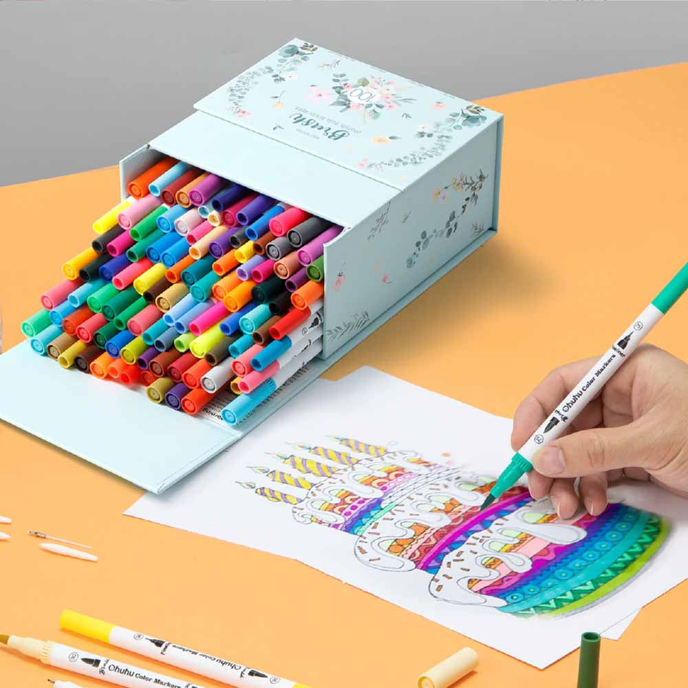 Set 160 marcadores Maui 160 a base de agua doble punta Pincel y Fineliner