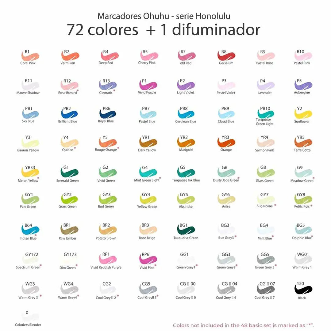Set 72 Marcadores de Alcohol Punta Pincel Y Biselada +1 blender Serie Honolulu