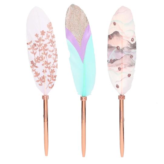 Escribir de la forma más bonita imaginable es posible gracias a los bolígrafos pluma de TOPModel. El cuerpo de los bolígrafos es color oro rosa y llevan impreso un logo pequeño. Disponibles tres diseños: lila con purpurina oro rosa, verde salvia y lila con punta oro rosa y marmoleado en tonos pastel con lunares oro rosa. Escriben en negro y la mina (SCHNEIDER 56 DIN 166554 D1) es recambiable.