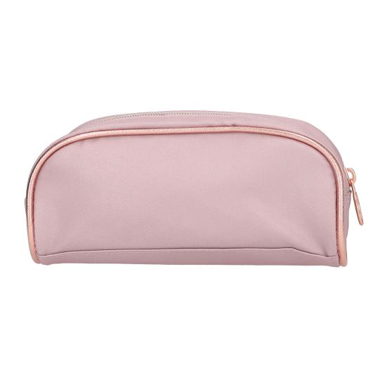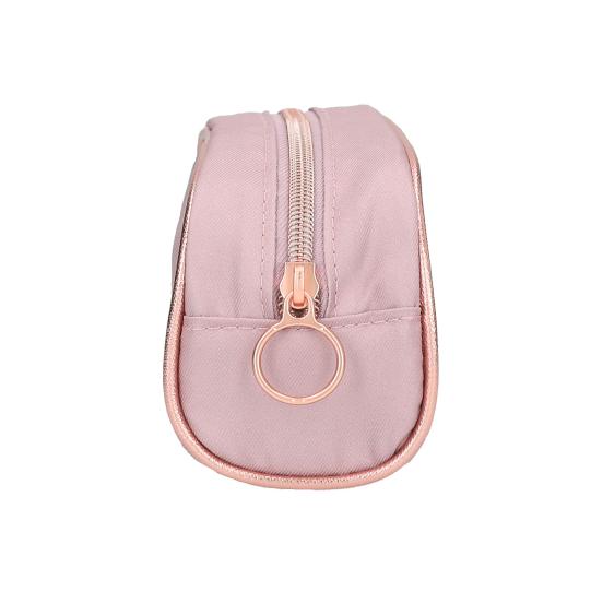 Este estuche color lila está decorada con elegantes detalles metálicos en oro rosa, mucha purpurina y una modelo de ensueno con un caballo. Perfecto para lápices y utensilios escolares.