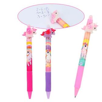 Tinta Borrable: Ideal para corregir errores o cambiar detalles sin dejar rastro. Disenos Surtidos: Disponibles en tres combinaciones de colores vibrantes y atractivas. Simplemente borra con la parte trasera del bolígrafo para revelar la mina. La tinta es de color azul - la mina no es recambiable. Venta por diseño - por favor consultar stock si desea alguno en especial.